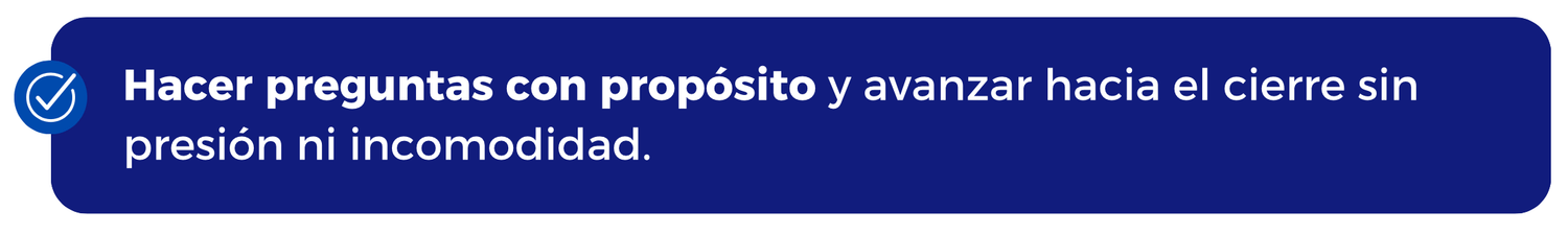 Aprenderás a hacer preguntas que abren la conversación y te acercan al cierre, sin parecer insistente.