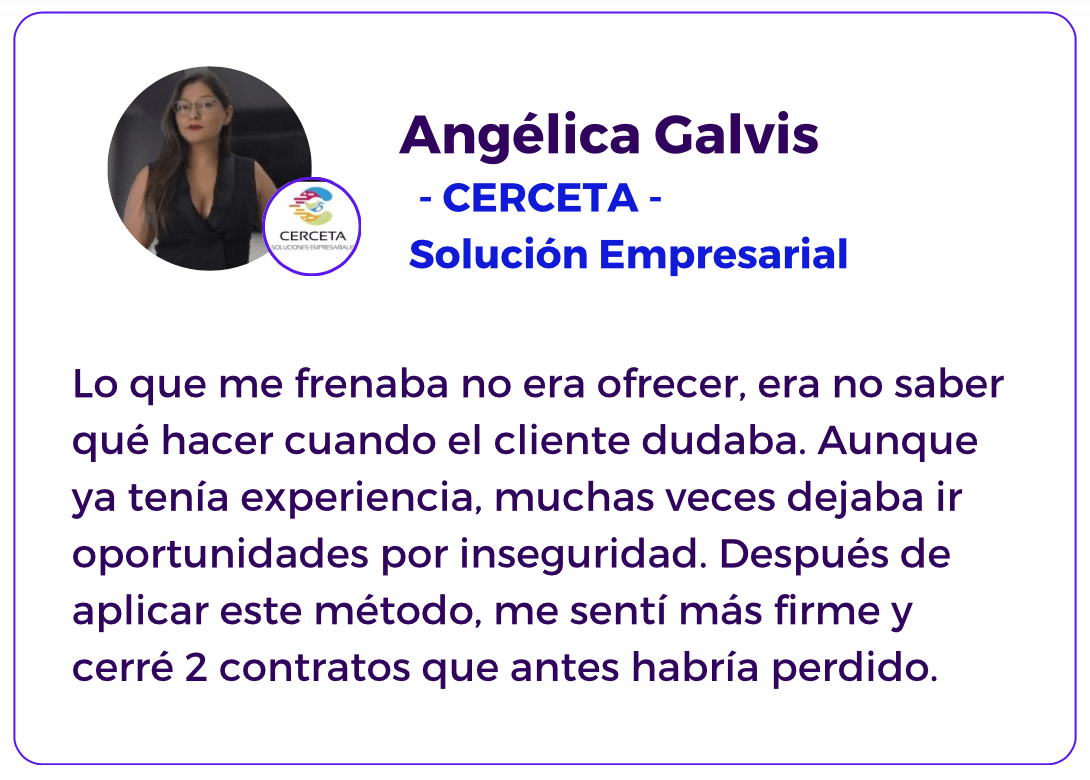 Trabajas tu seguridad interna, tu forma de comunicar y tu capacidad para manejar objeciones con calma, estrategia y autenticidad.