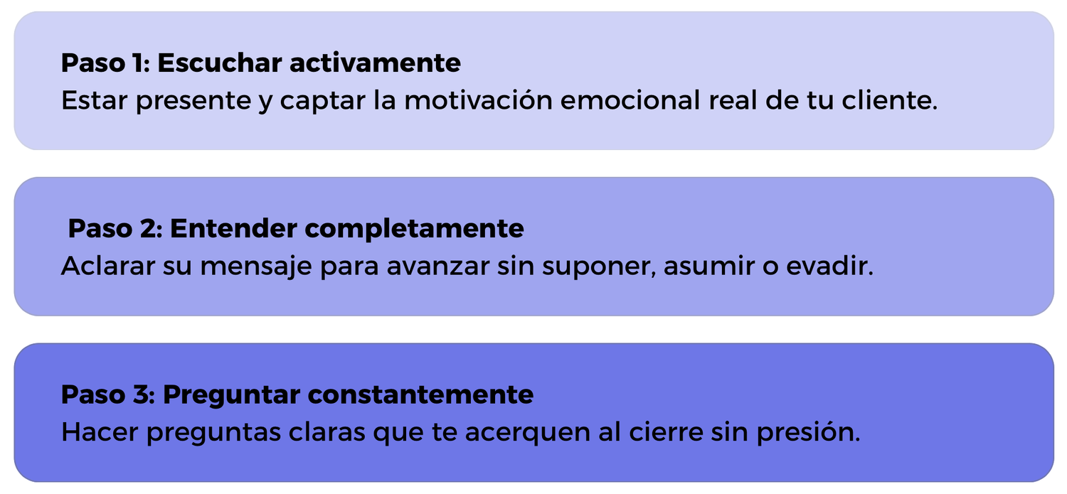 Es comprender, conectar y guiar la conversación con claridad y seguridad.