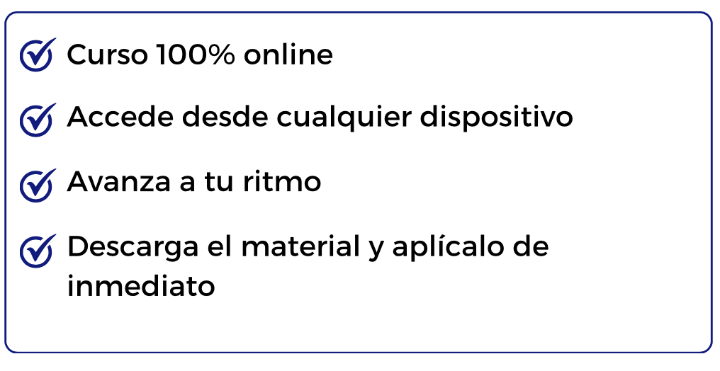El curso es 100% online: puedes empezarlo cuando quieras y avanzar a tu ritmo.
