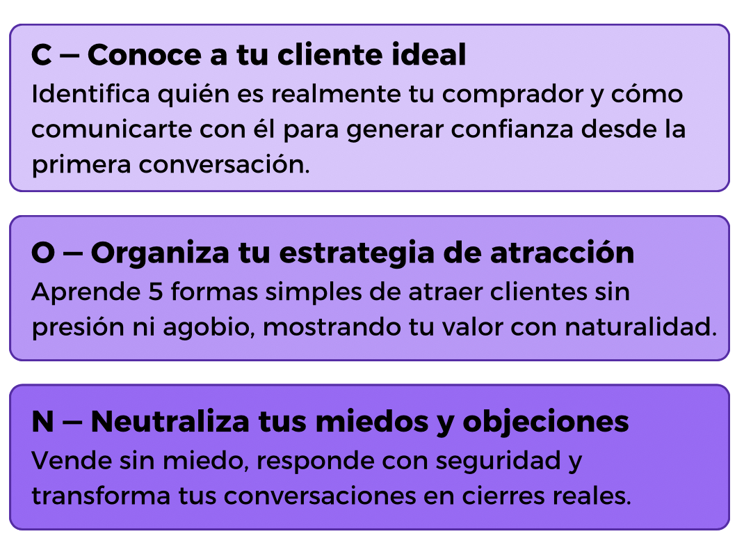 💡 Ideal para quienes quieren dejar de improvisar y tener un proceso de ventas claro, simple y humano.