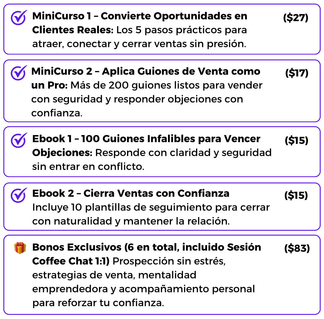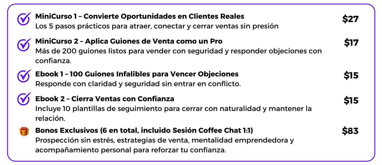 📌 Este MiniCurso + Kit de Guiones es el puente entre “Tengo un buen producto” y “Ahora sé cómo venderlo con claridad y confianza.”