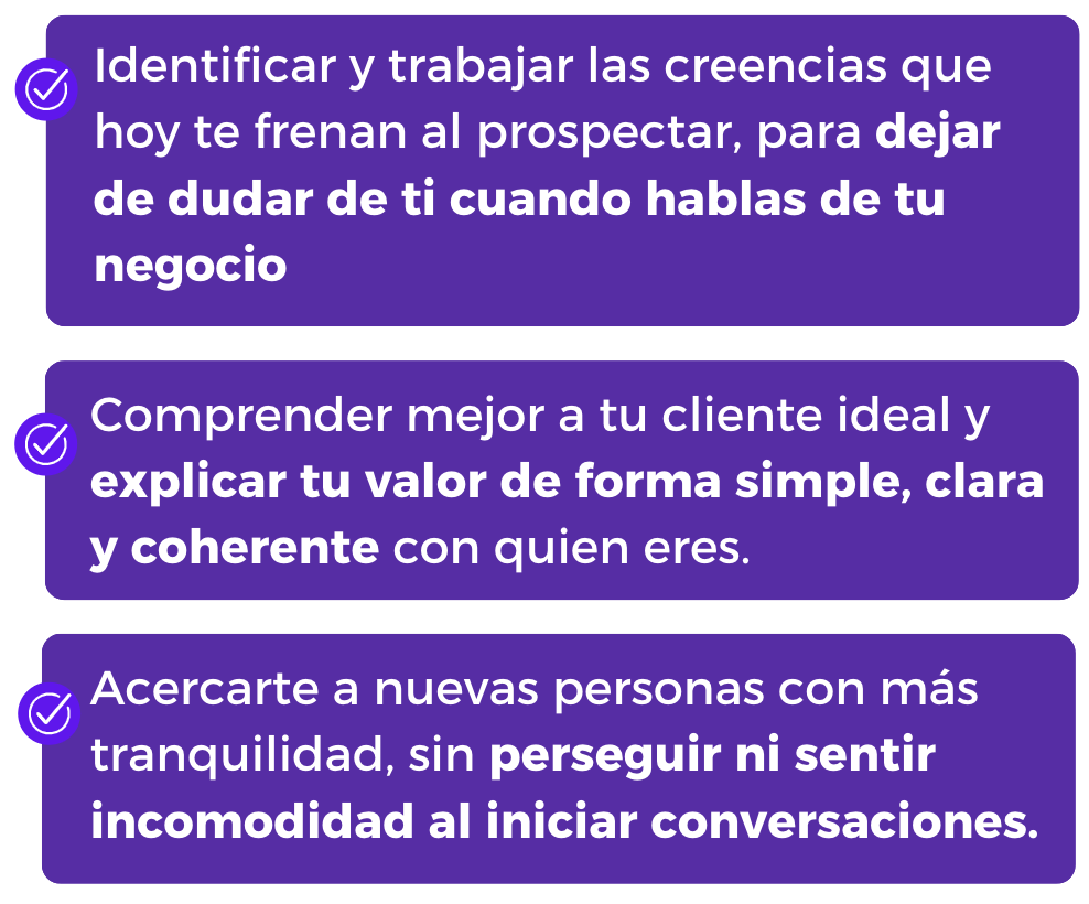 y aprendes a prospectar desde un lugar más claro, auténtico y alineado contigo.