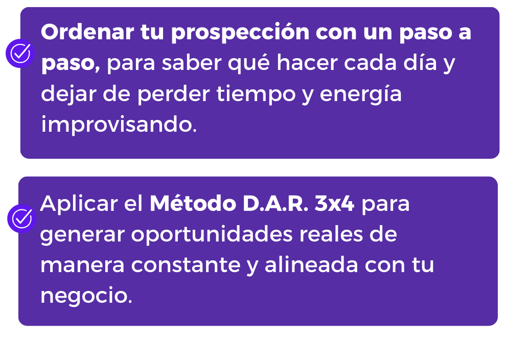 💬 El Método D.A.R. 3x4™ te da estructura, claridad y dirección para prospectar de forma más consciente, ordenada y alineada contigo.