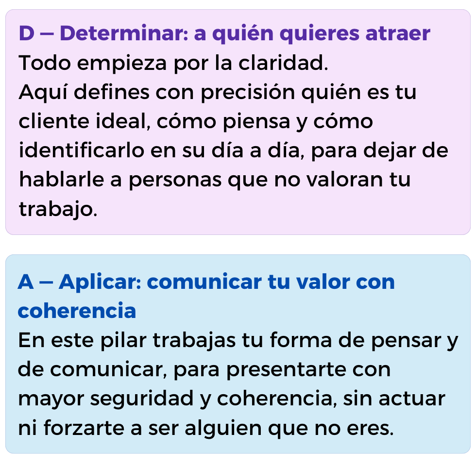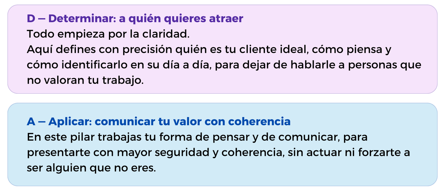 Para darte un método que te sostenga y te permita prospectar, comunicar y atraer clientes de forma auténtica y aplicable a tu día a día.